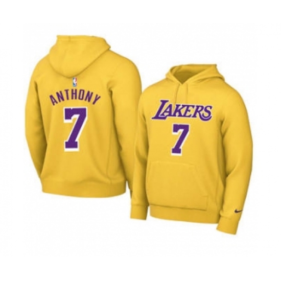 >Men's Los Angeles Lakers #7 Carmelo Anthony 2021 Yellow Pullover Basketball Hoodie