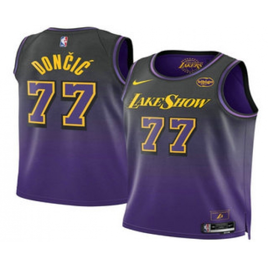 Youth Los Angeles Lakers #77 Luka Doncic Purple 2024 25 City Edition Stitched Basketball Jersey