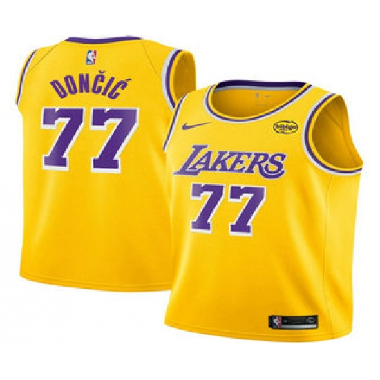 Men's Los Angeles Lakers #77 Luka Doncic Yellow 2025 Icon Edition Stitched Jersey