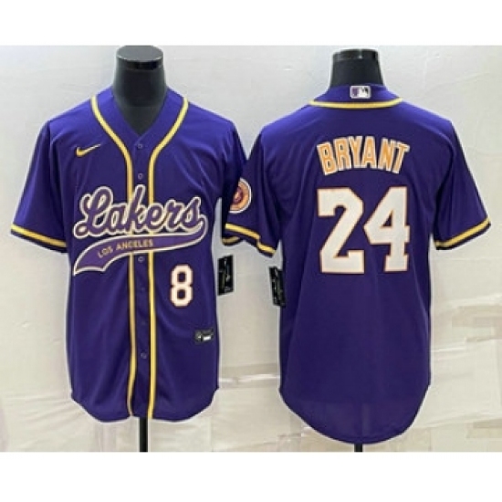 Men's Los Angeles Lakers #8 #24 Kobe Bryant Number Purple With Cool Base Stitched Baseball Jersey