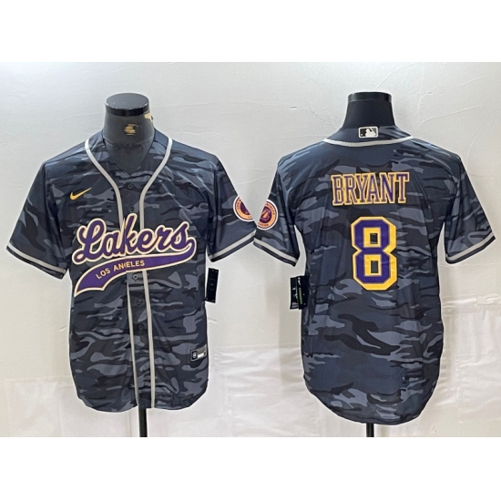 >Men's Los Angeles Lakers #8 Kobe Bryant Grey Camo Cool Base Stitched Baseball Jersey