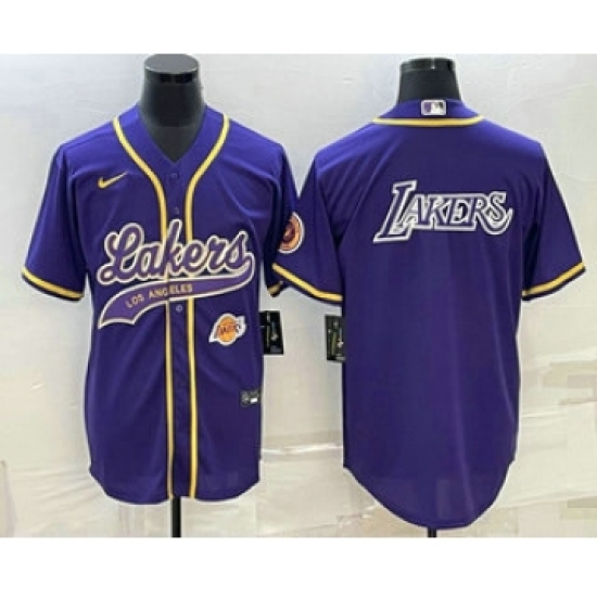 Men's Los Angeles Lakers Purple Big Logo With Cool Base Stitched Baseball Jersey