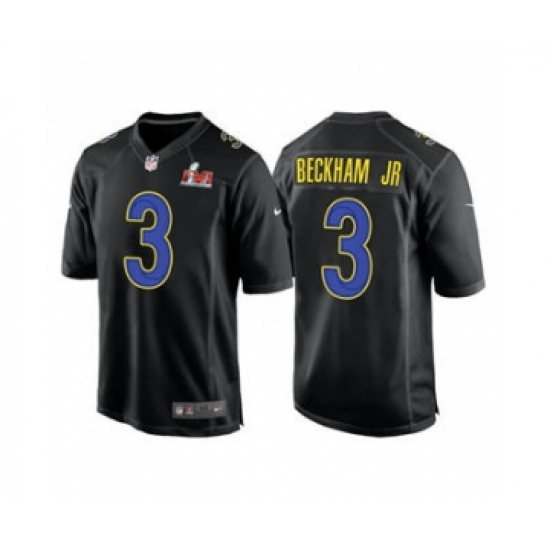 Men's Los Angeles Rams #3 Odell Beckham Jr. Black 2022 Super Bowl LVI Game Stitched Jersey