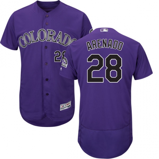 Home>MLB>Colorado Rockies>Nolan Arenado>Men's Majestic Colorado Rockies #28 Nolan Arenado Purple Alternate Flex Base Authentic Collection MLB Jersey