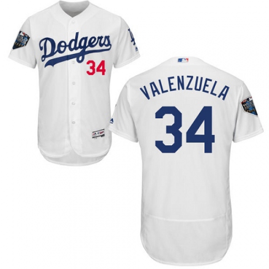 Men's Majestic Los Angeles Dodgers #34 Fernando Valenzuela White Home Flex Base Authentic Collection 2018 World Series MLB Jersey