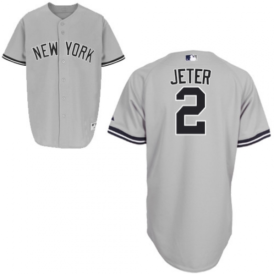 Men's Majestic New York Yankees #2 Derek Jeter Authentic Grey Name On Back MLB Jersey