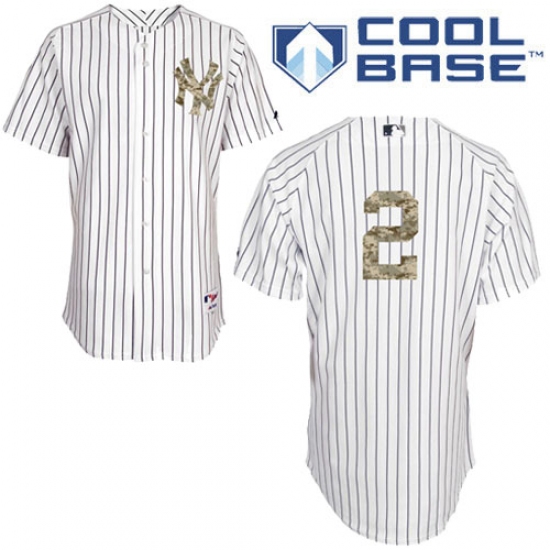 Men's Majestic New York Yankees #2 Derek Jeter Replica White USMC Cool Base MLB Jersey