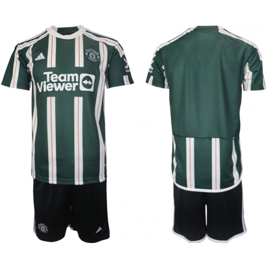 kids Manchester United Blank 2023-24 Green Away Soccer Jersey