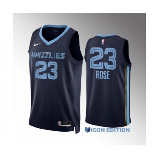 Men's Memphis Grizzlies #23 Derrick Rose Navy Icon Edition Stitched Basketball Jersey