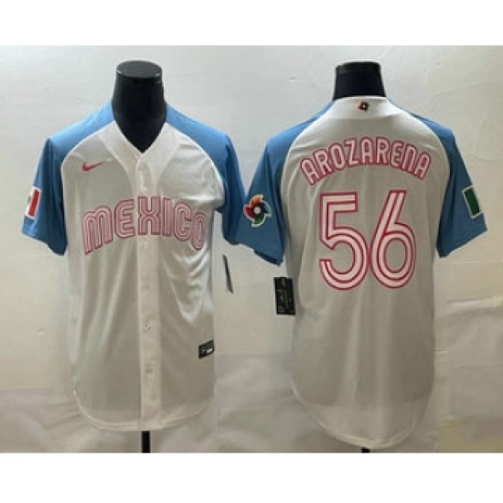 Men's Mexico Baseball #56 Randy Arozarena 2023 White Blue World Classic Stitched Jerseys
