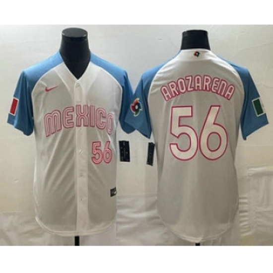 Men's Mexico Baseball #56 Randy Arozarena Number 2023 White Blue World Classic Stitched Jersey2