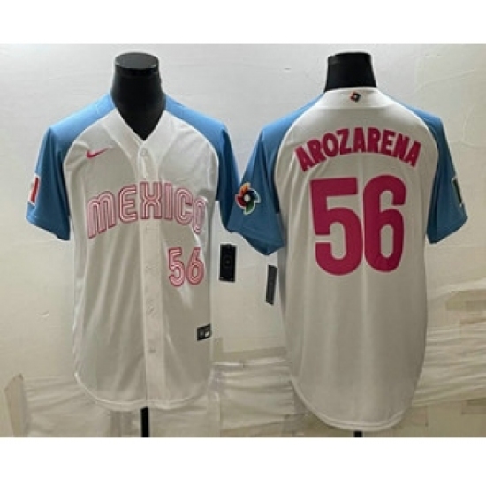 Men's Mexico Baseball #56 Randy Arozarena 2023 White Blue World Classic Stitched Jersey