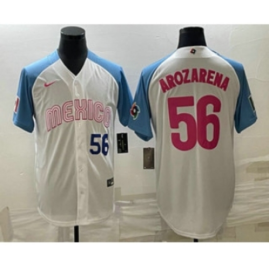 >Men's Mexico Baseball #56 Randy Arozarena Number 2023 White Blue World Classic Stitched Jersey9