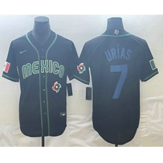 Men's Mexico Baseball #7 Julio Urias 2023 Black White World Classic Stitched Jersey 1