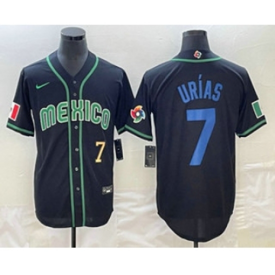 Men's Mexico Baseball #7 Julio Urias Number 2023 Black World Classic Stitched Jersey2