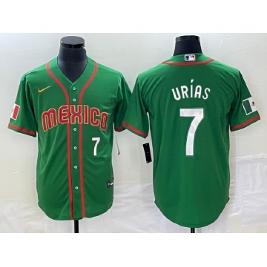 >Men's Mexico Baseball #7 Julio Urias Number 2023 Green World Classic Stitched Jersey1