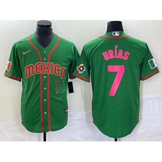 Men's Mexico Baseball #7 Julio Urias Number 2023 Green World Classic Stitched Jersey4