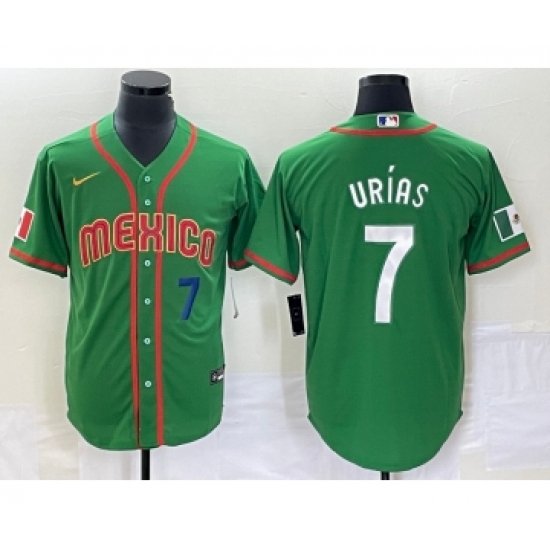 Men's Mexico Baseball #7 Julio Urias Number 2023 Green World Classic Stitched Jersey