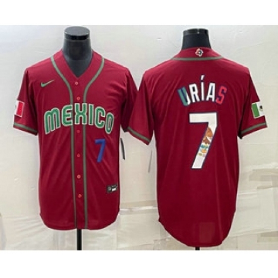 Men's Mexico Baseball #7 Julio Urias 2023 Red Green World Baseball Classic Stitched Jerseys