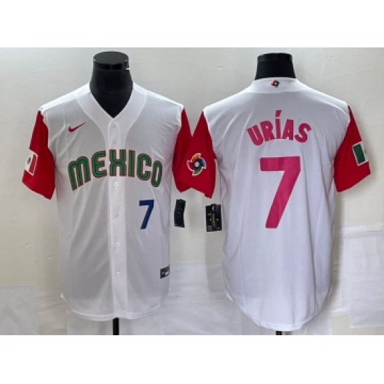Men's Mexico Baseball #7 Julio Urias Number 2023 White Red World Classic Stitched Jersey49
