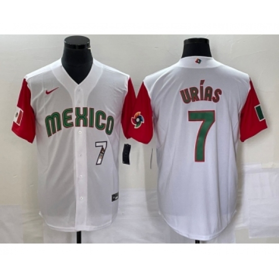 Men's Mexico Baseball #7 Julio Urias Number 2023 White Red World Classic Stitched Jersey 48