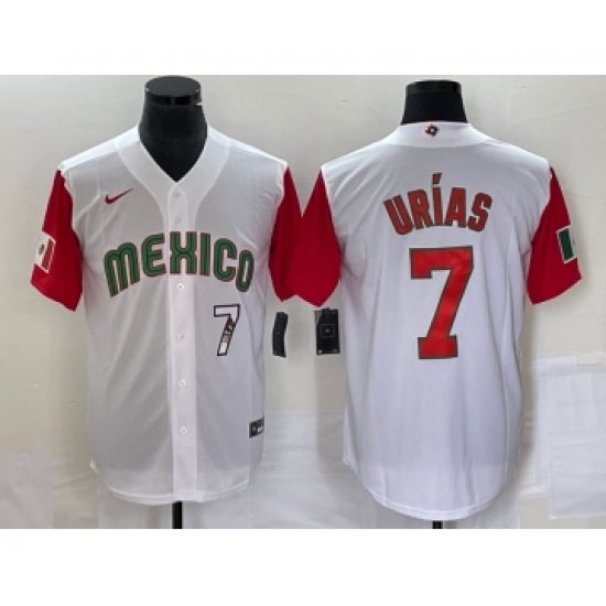 Men's Mexico Baseball #7 Julio Urias Number 2023 White Red World Classic Stitched Jersey16