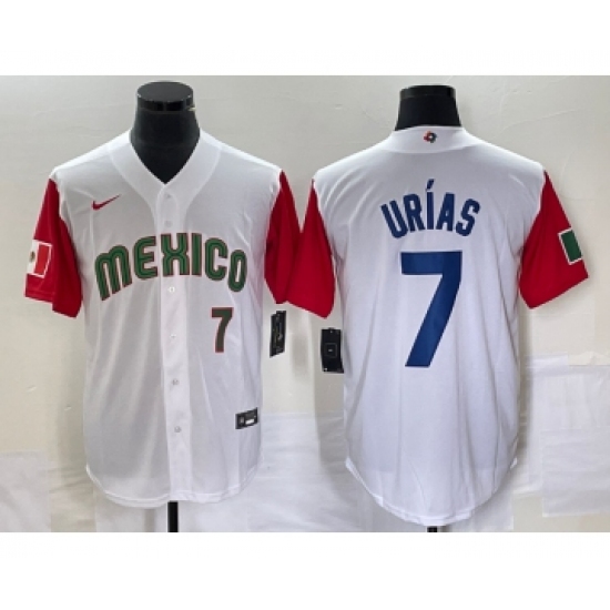 Men's Mexico Baseball #7 Julio Urias Number 2023 White Red World Classic Stitched Jersey46
