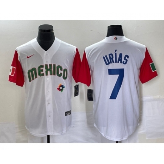 Men's Mexico Baseball #7 Julio Urias Number 2023 White Red World Classic Stitched Jersey7
