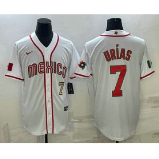 Men's Mexico Baseball #7 Julio Urias 2023 White World Baseball Classic Stitched Jersey