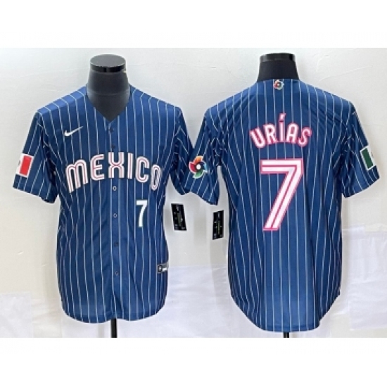 Men's Mexico Baseball #7 Julio Urías 2023 Navy World Baseball Classic Stitched Jersey