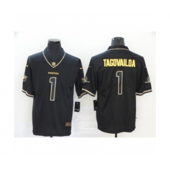 Men's Miami Dolphins #1 Tua Tagovailoa 2020 Limited Black Golden Edition Football Jersey