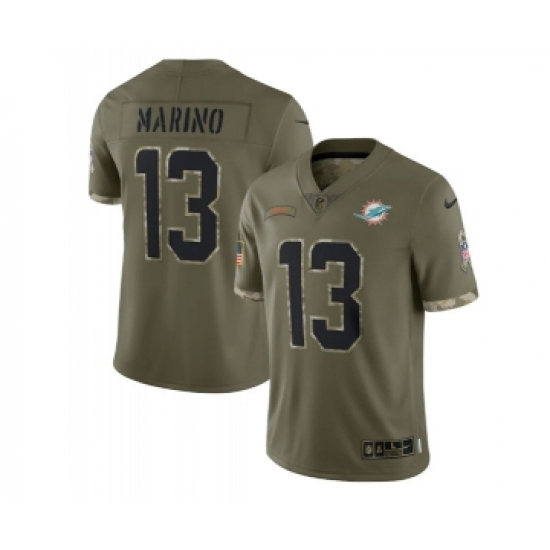 >Men's Miami Dolphins #13 Dan Marino 2022 Olive Salute To Service Limited Stitched Jersey