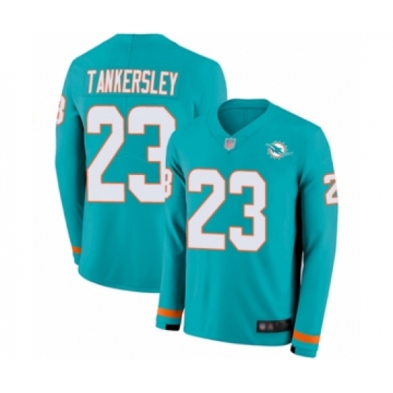 >Men's Miami Dolphins #23 Cordrea Tankersley Limited Aqua Therma Long Sleeve Football Jersey