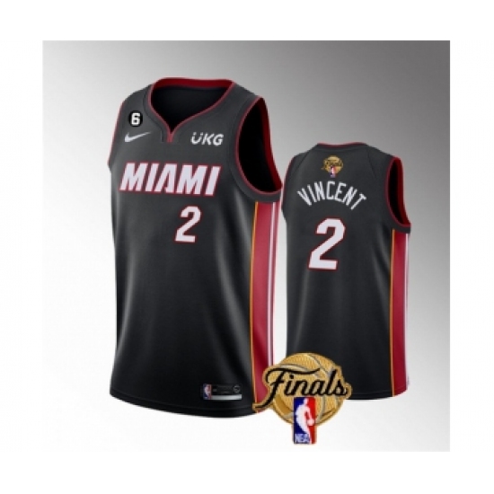 Men's Miami Heat #2 Gabe Vincent Black 2023 Finals Icon Edition With NO.6 Stitched Basketball Jersey