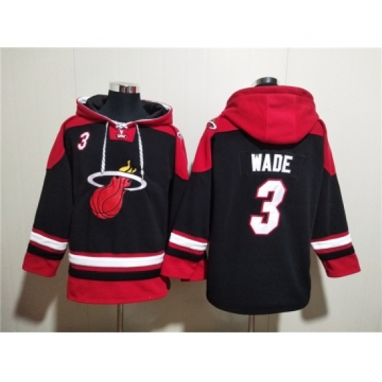 >Men's Miami Heat #3 Dwyane Wade Black Ageless Must-Have Lace-Up Pullover Hoodie