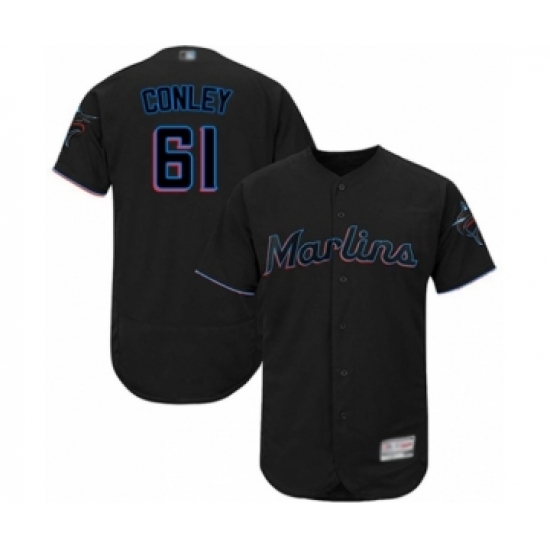 Men's Miami Marlins #61 Adam Conley Black Alternate Flex Base Authentic Collection Baseball Player Jersey