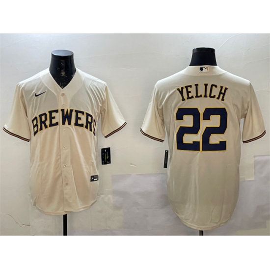 Men's Milwaukee Brewers #22 Christian Yelich Cream Cool Base Stitched Jersey
