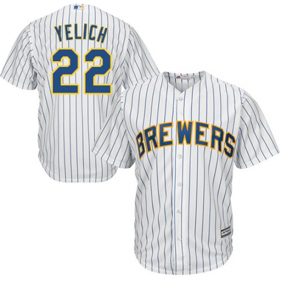 Men's Milwaukee Brewers #22 Christian Yelich White(Blue Strip) New Cool Base Stitched MLB Jersey