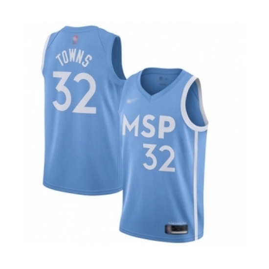 >Men's Minnesota Timberwolves #32 Karl-Anthony Towns Swingman Blue Basketball Jersey - 2019 20 City Edition