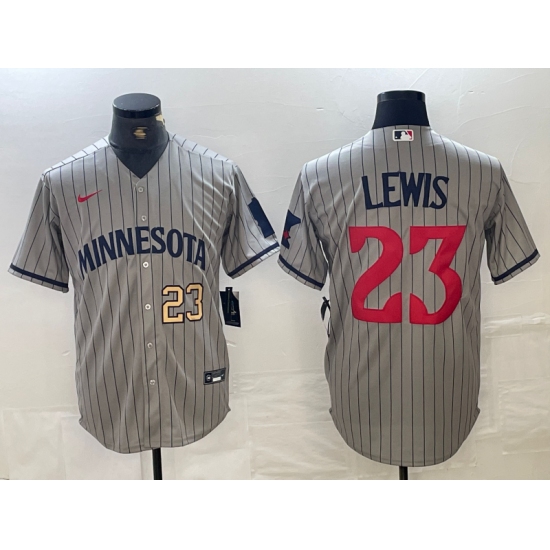 >Men's Minnesota Twins #23 Royce Lewis Number 2023 Grey Home Team Cool Base Stitched Jersey