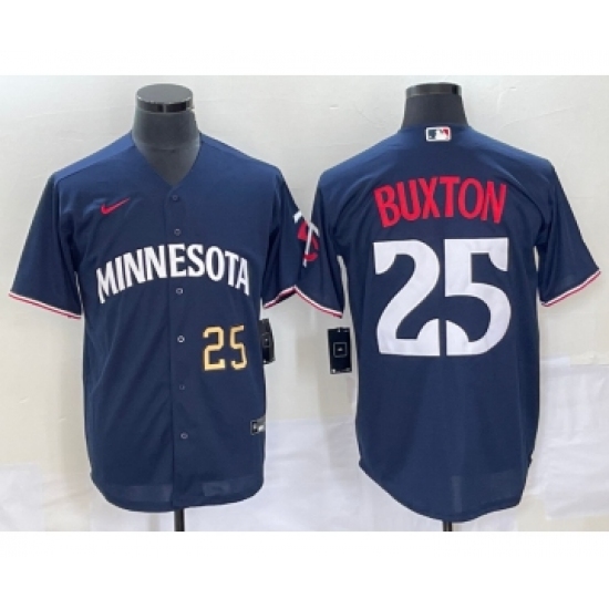 Men's Minnesota Twins #25 Byron Buxton Number 2023 Navy Blue Cool Base Stitched Jersey