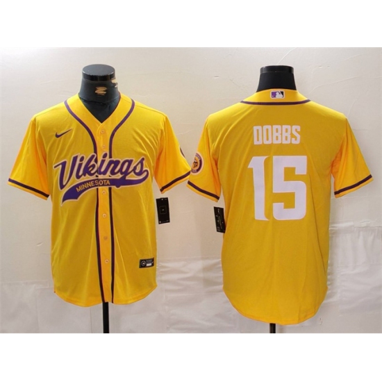 Men's Minnesota Vikings #15 Joshua Dobbs Yellow Cool Base Stitched Baseball Jersey