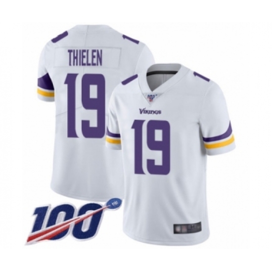 Men's Minnesota Vikings #19 Adam Thielen White Vapor Untouchable Limited Player 100th Season Football Jersey