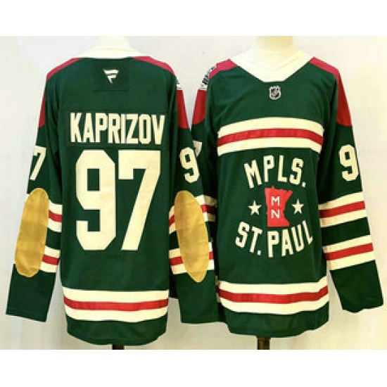 >Men's Minnesota Wild #97 Kirill Kaprizov Green Winter Classic Stitched Authentic Jersey