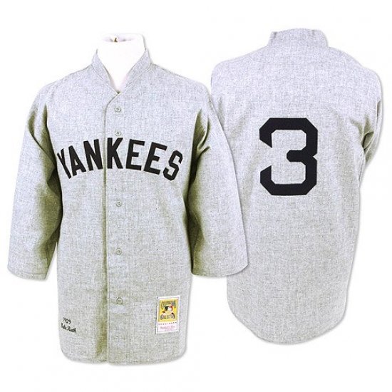 Men's Mitchell and Ness 1929 New York Yankees #3 Babe Ruth Replica Grey Throwback MLB Jersey