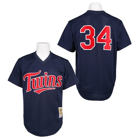 Men's Mitchell and Ness 1991 Minnesota Twins #34 Kirby Puckett Replica Navy Blue Throwback MLB Jersey