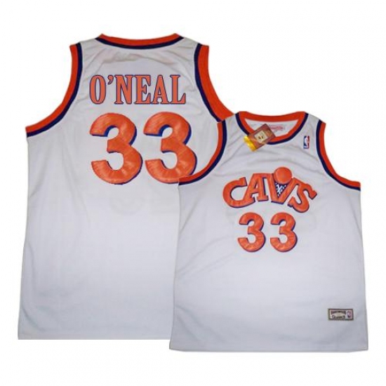 Men's Mitchell and Ness Cleveland Cavaliers #33 Shaquille O'Neal Authentic White CAVS Throwback NBA Jersey