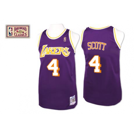 Men's Mitchell and Ness Los Angeles Lakers #4 Byron Scott Authentic Purple Throwback NBA Jersey