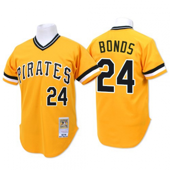 Men's Mitchell and Ness Pittsburgh Pirates #24 Barry Bonds Replica Gold Throwback MLB Jersey