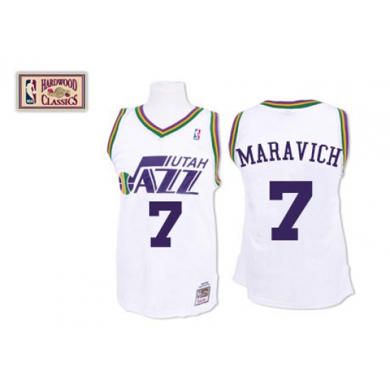 Men's Mitchell and Ness Utah Jazz #7 Pete Maravich Authentic White Throwback NBA Jersey